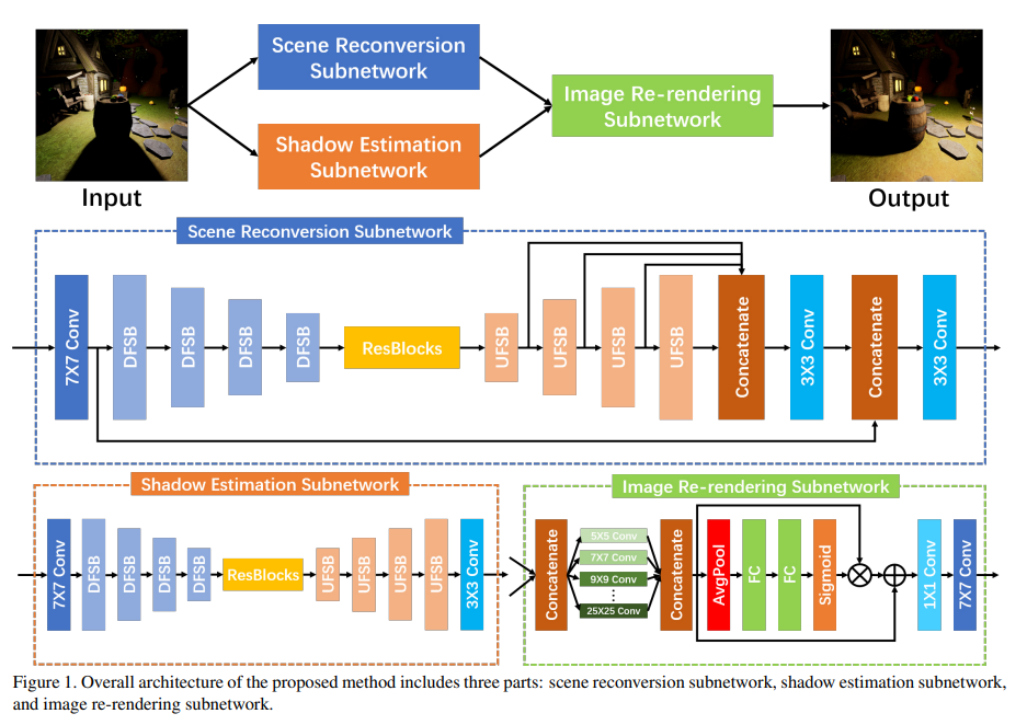 (1)场景重建子网和阴影估计子网都使用该文所提出的 DFSB 和 UFSB 作为特征编码和解码的基本块。